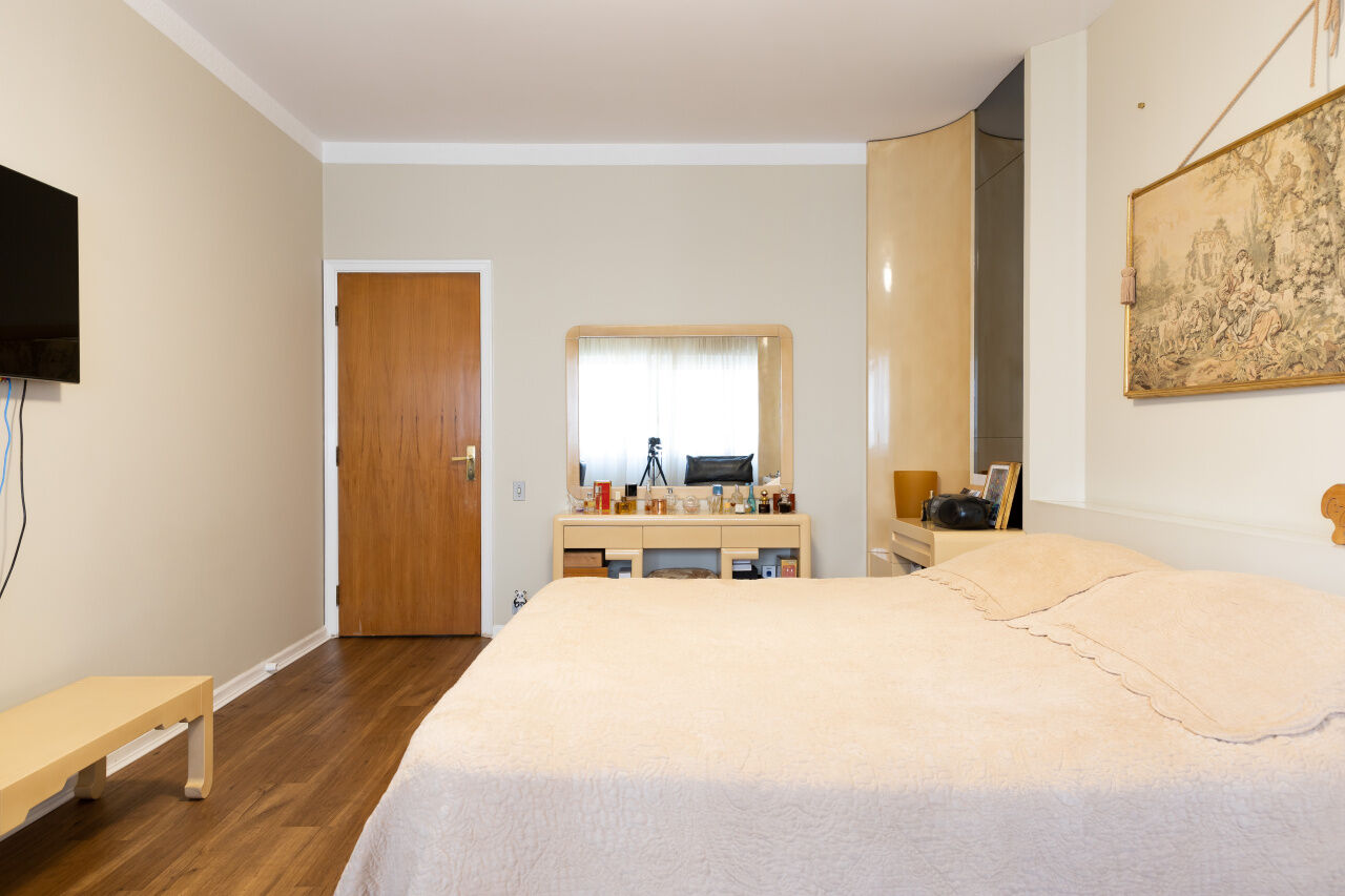 Excelente apartamento, localizado na alameda Itu, um por andar, living para 03 ambientes com ventilação cruzada varanda numa ponta e janelas em outro extremo. Sala de jantar. Uma outra espaçosa sala que pode ser um hometheater. Hall de distribuição com lavabo. Sala de almoço. 2suites Cozinha com uma vista incrível, área de serviço ampla, 02 quartos de funcionaria