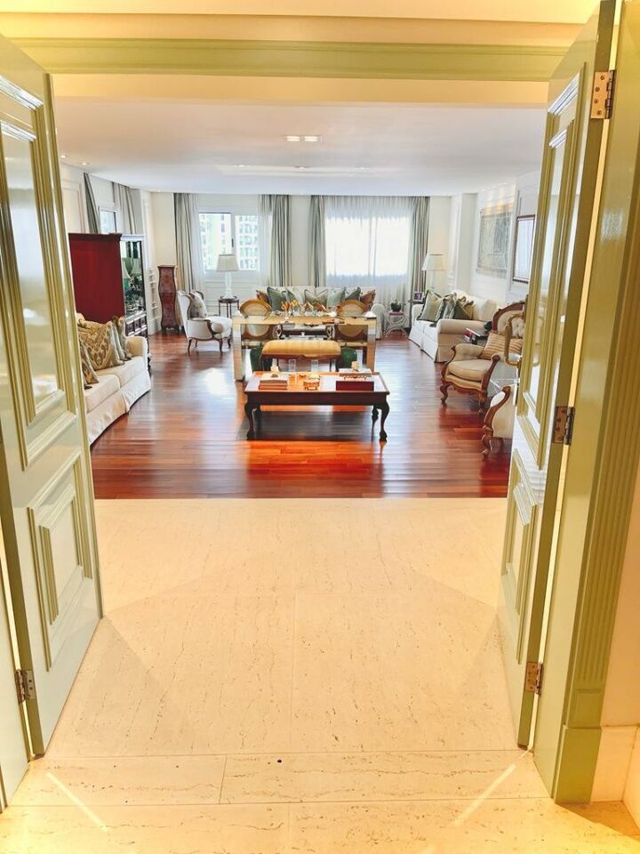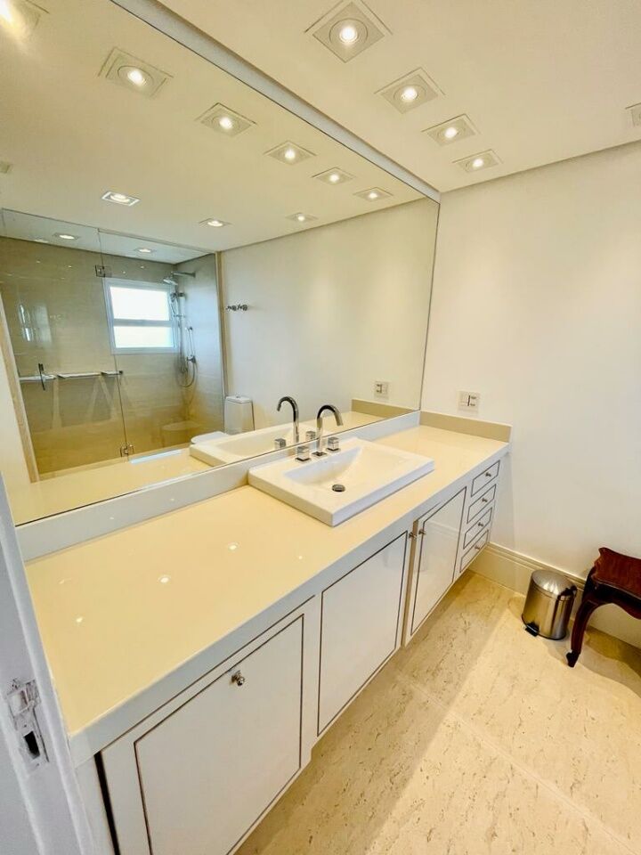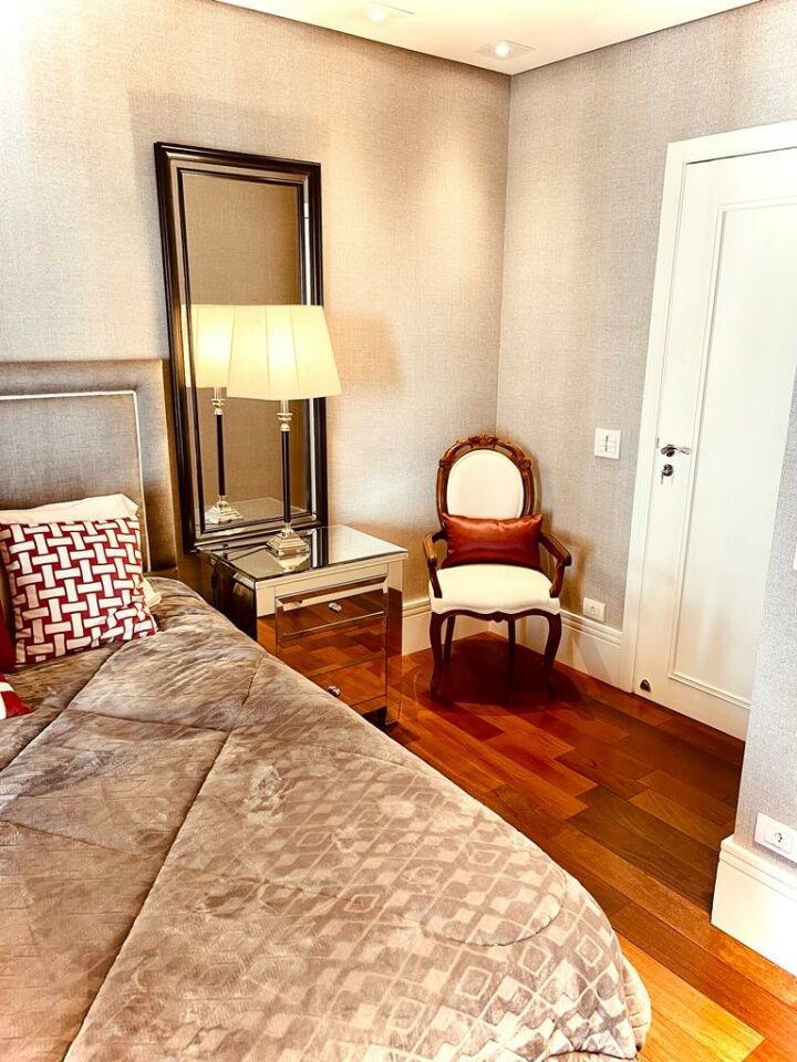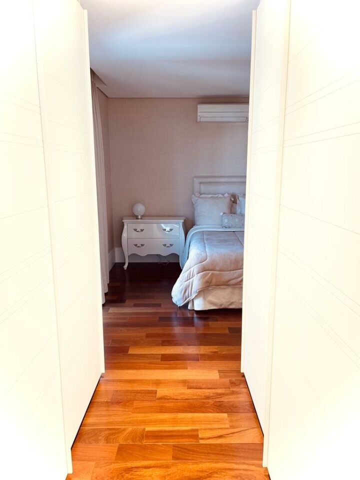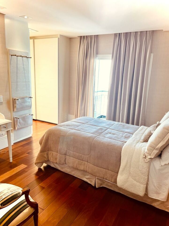 Se vc tem filhos na escola suiça ou americana e procura seu apto achou! Área: 370m privativos Suítes: 3 Suítes Master: 2 Banheiros: 5 Lavabos: 1 Vagas de garagem: 5 Vagas para visitantes: 50 Depósito interno Depósito externo Cozinha planejada Dispensa Copa Home Lavanderia Dependência de colaboradores completa Corredor íntimo com escritório e rouparia embutida 2 elevadores sociais e 2 de serviço OPÇÃO DE VENDA COM E SEM MOBILIA Valor do imóvel: R$3.850.000,00 Valor com porteira fechada: R$5.000.000,00 Valor do condomínio: R$3.160,28 Valor do IPTU: R$2.145,00 Apartamento 100% mobiliado, decorado, e com eletrodomésticos de linha premium. A unidade foi recém reformada e está literalmente pronta para morar. Todos os projetos, fornecedores e empresas envolvidas, são de primeira linha. Está em um andar alto (18°), não tem vizinhos de janela, planta original com 4 suítes, foi modificado para 3 suítes, sendo 2 suítes masters + uma suíte tipo, todas as suítes contam com camas de alto padrão com cabeceira, televisor, closet, varanda, iluminação planejada, piso de madeira nobre, banheiros revestidos com pedras importadas e equipados com louças e metais novos, mesas de cabeceiras, ar condicionado, cortinas, papel de parede, quadros, etc. A unidade conta com amplo living de decoração clássica e atemporal divido em 3 espaçosos ambientes com móveis de madeira maciça, ar condicionado, quadros, escultura, vários sofás, mesas de centro, mesas de apoio, abajures, etc. Tem um lindo terraço com paisagismo (fechado com vidro) e vista para o bosque particular do condomínio. Ampla lavanderia com móveis planejados, balcão revestido com a mesma pedra da cozinha (uma lava roupas + uma secadora de alta performance - 13kg de capacidade cada). Todos os móveis planejados foram projetados e confeccionados pela empresa Ornare (com dobradiças e amortecedores importados). Porta de entrada social dupla, laqueada e com fechadura eletrônica. Aconchegante home-teather com sofá de 4 módulos, rack planejado, televisor, ar condicionado, mesa de apoio, iluminação planejada e com acesso à varanda. Cozinha completíssima, com equipamentos da linha Brastemp Gourmand, lava louças de 10 serviços, cooktop de indução, forno elétrico e microondas embutidos, duas geladeiras e dispensa planejada. Copa com mesa de 6 lugares + móveis planejados. O empreendimento possuiu gerador próprio que ilumina 100% das áreas comuns. Área de lazer completa com piscinas adulto e infantil, 2 quadras de tênis , uma quadra de futebol society e uma quadra poliesportiva, sauna, brinquedoteca, playground, salão de festas super equipado e com pé direito duplo, Home Office e um lindo hall de entrada com dois ambientes de espera, 50 vagas exclusivas para visitantes, bosque com trilhas pavimentadas, segurança presencial com monitoramento 24h.