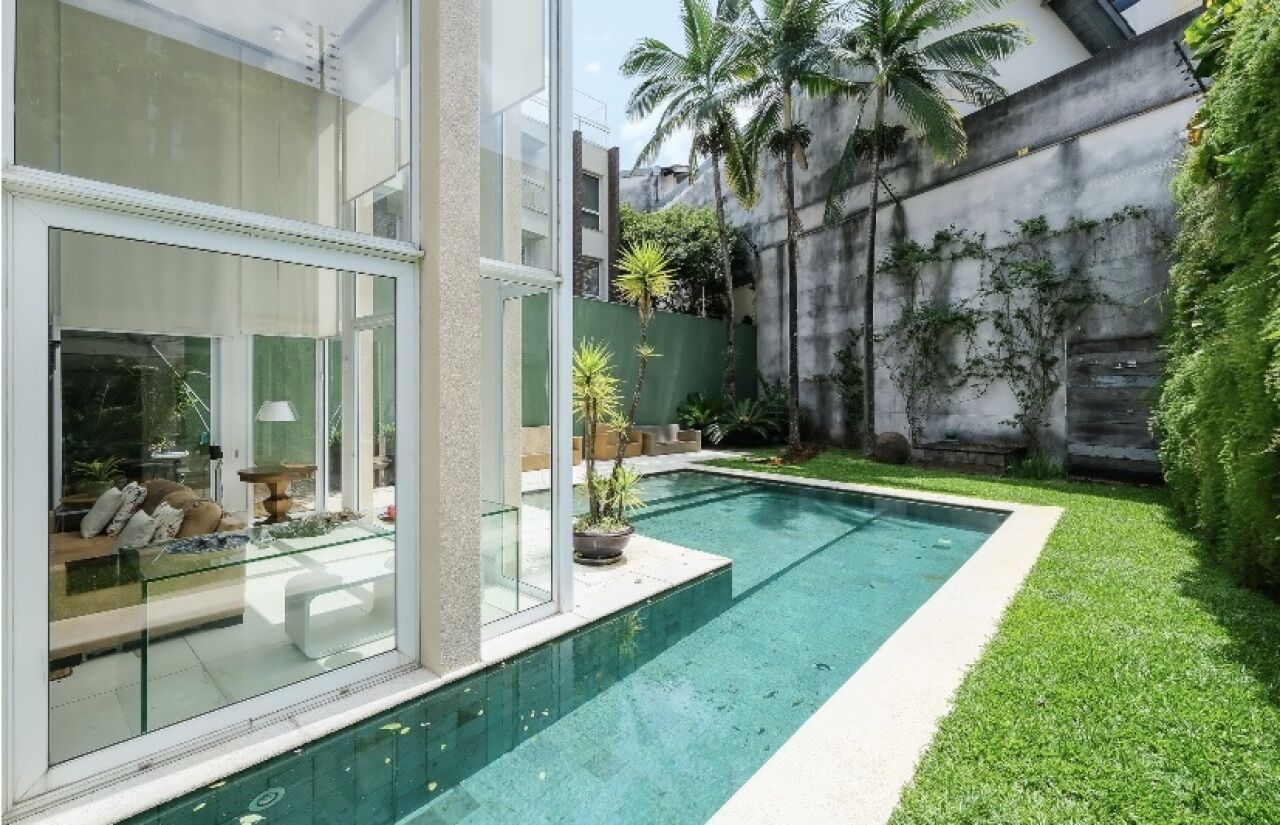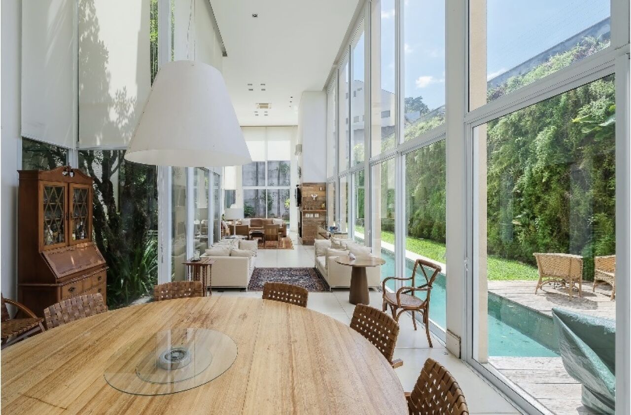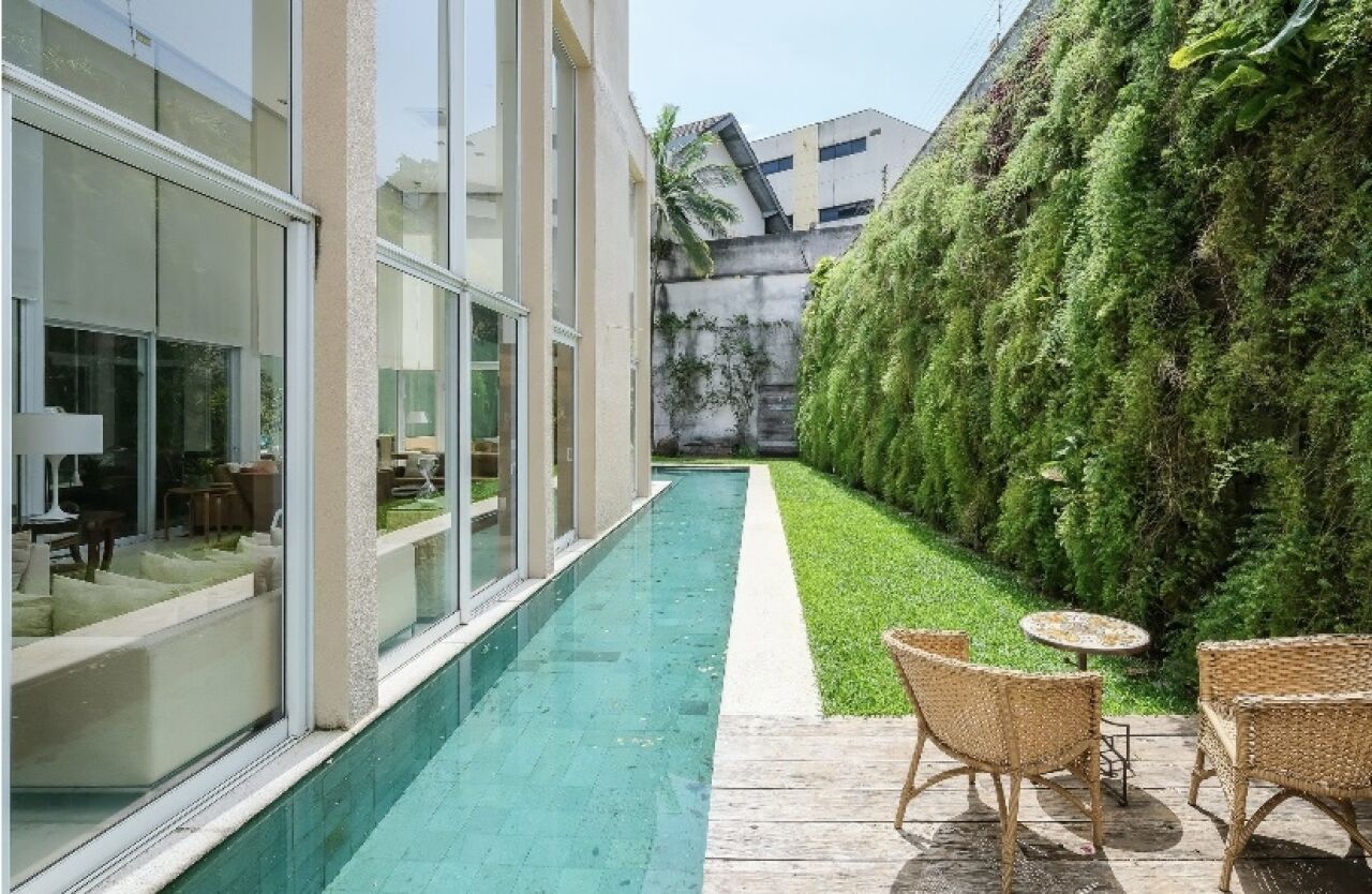 Piscina em L, com pedras Hijau, paisagismo GILBERTO ELKIS. Cozinha gourmet toda equipada com cooktop, grelha e coifa que integra com a area social 3 suites, sendo a principal com closet, escritorio e sala intima