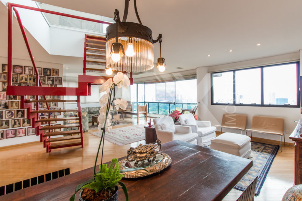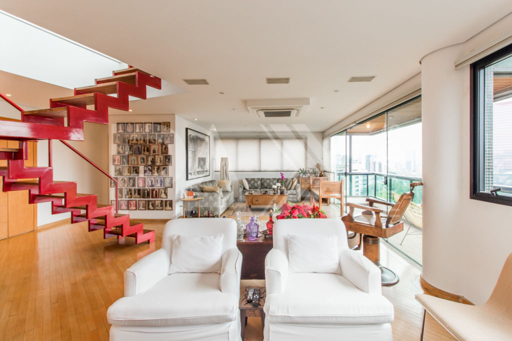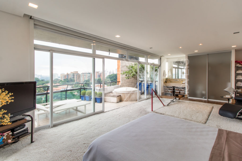 Cobertura moderna em uma das ruas mais tranquilas e bem localizadas da Vila Madalena. Varanda em ambos os pisos, sendo a do andar superior com ofurô e vista eterna para o verde do bairro.