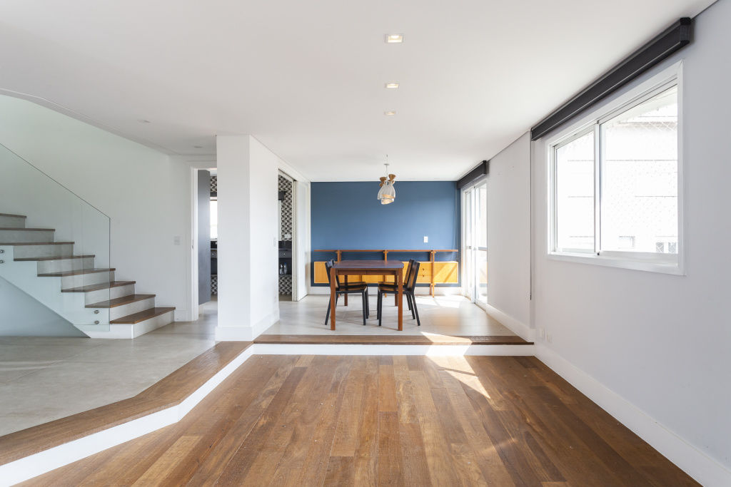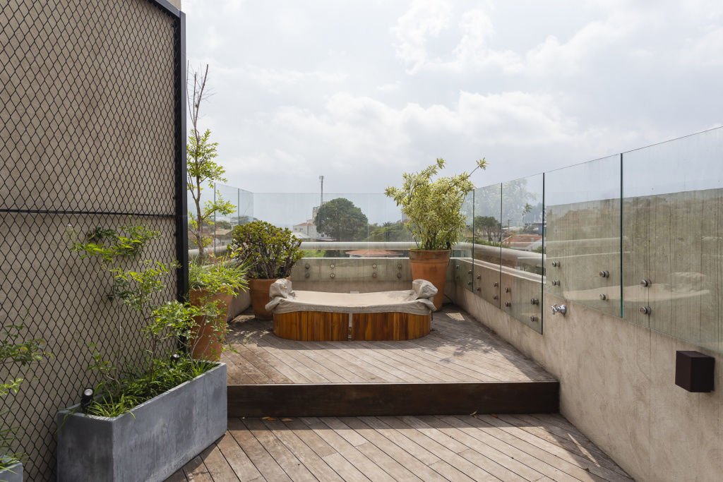 Piso inferior: Área íntima com 3 stes, sendo a master com closet e sala íntima Piso intermediário: Living para 2 ambientes com varanda Sala de jantar, copa, cozinha e dep. de serviço Piso superior: Rooftop Sala para 2 ambientes, área gourmet com churrasqueira, solarium, jacuzzi